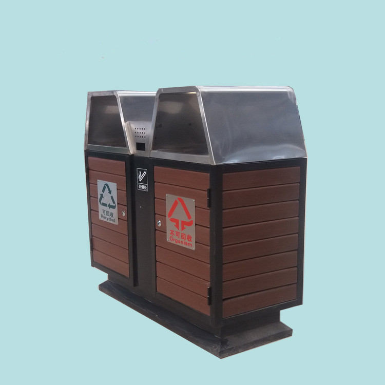 環(huán)保分類鋼木垃圾桶桶身可選用實木、防腐木、塑木等環(huán)保材料;內(nèi)桶采用加厚鍍鋅板,防腐防銹能力強(qiáng);桶架采用冷軋鋼板,經(jīng)過酸洗除銹噴粉高溫烤漆處理。整體美觀大方、堅固耐用。